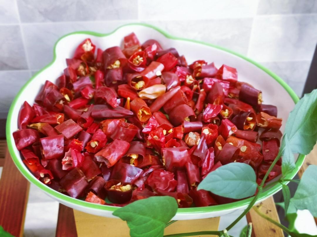 阳台种的辣椒,晒干剪碎,一盘~