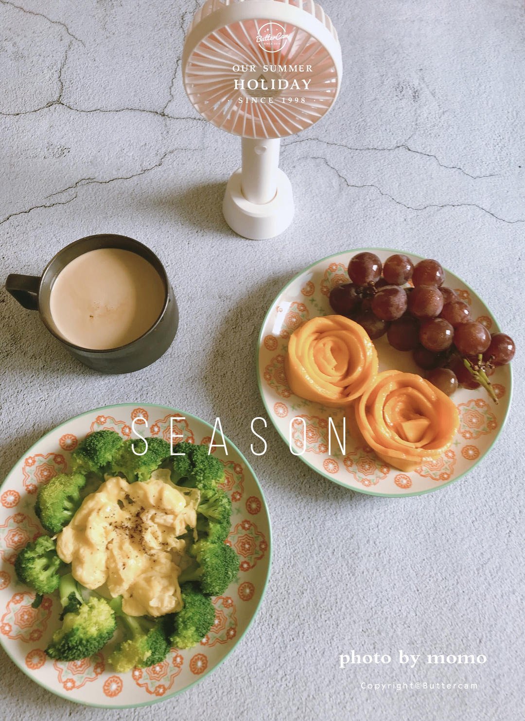 晨食:水煮西兰花、无盐黑胡椒滑蛋、葡萄与芒果花、无糖奶咖!