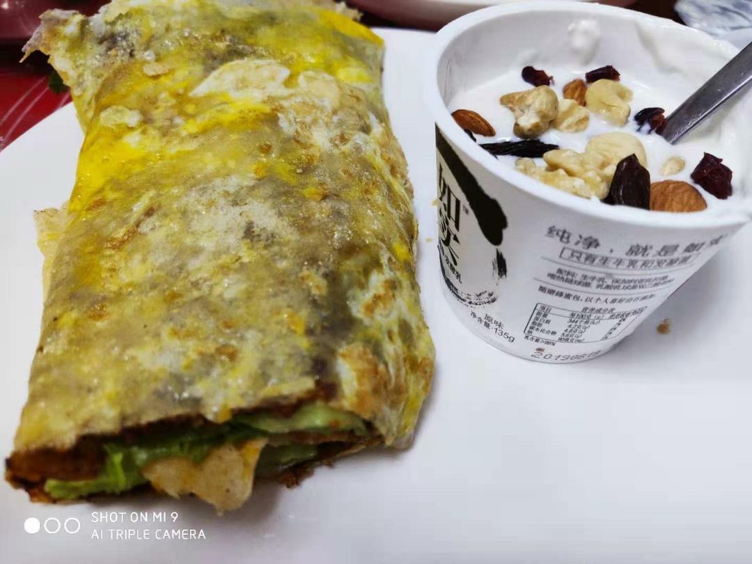 第三天,煎饼果子、酸奶拌每日坚果
