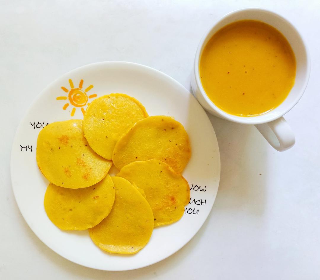 周日早餐,南瓜红枣小米糊+南瓜松饼