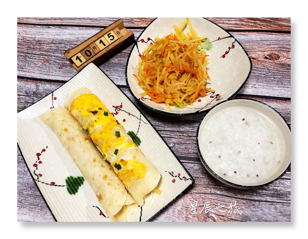 炒个土豆丝,卷个鸡蛋饼,配点白粥