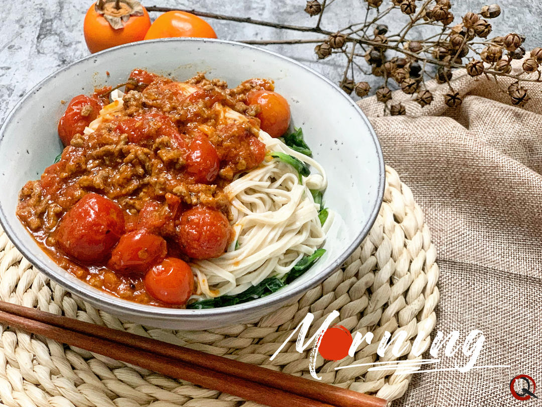 减体重不减食欲的兔酱 做过 2019年11月07日 一小把牛肉馅煎锅直接炒香炒出牛油,一勺有机番茄酱,几颗小番茄,蚝油酱油鱼露盐和罗勒叶碎,加水熬成肉燥酱。一碗番茄肉糟拌面✅可以先吃面,吃到一半的时候加面汤成汤面。一面两吃,暖和! 2019-11-07