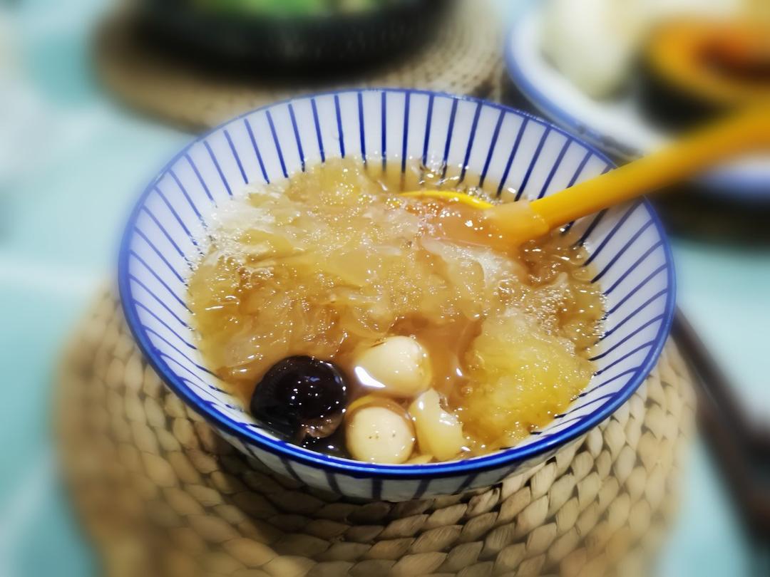 冰糖银耳红枣莲子汤,煮了两个小时还多,银耳很糯