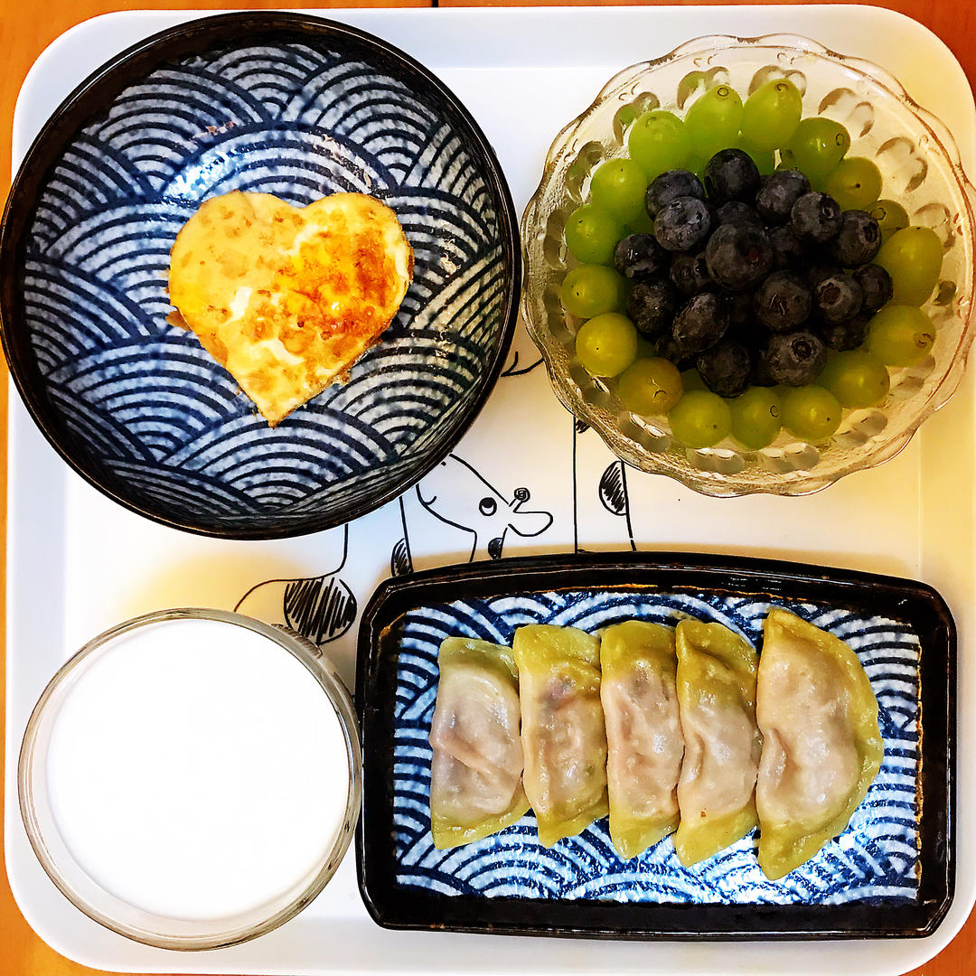 牛肉蒸饺➕牛奶🥛➕煎蛋🍳➕绿提蓝莓小果盘😝
