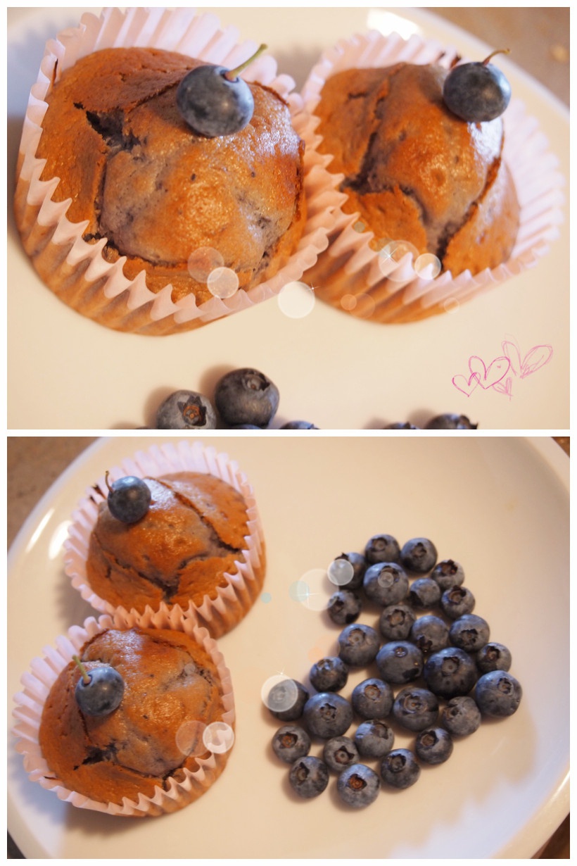 藍莓馬芬。加了新鮮藍莓和藍莓干。真的很好吃。就是裝杯容量控制得不好。下次改進!!