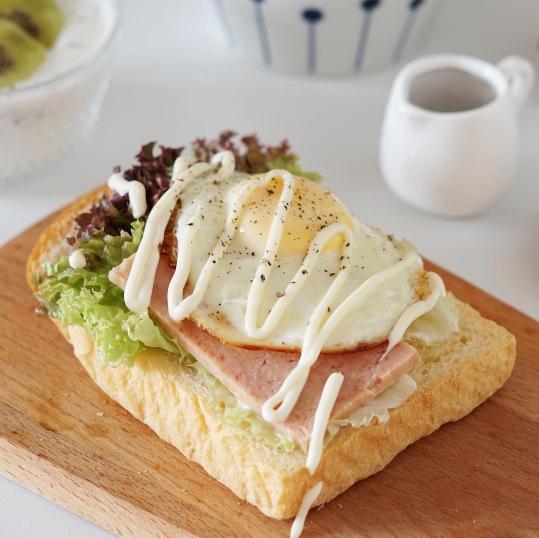 铺上生菜午餐肉煎蛋