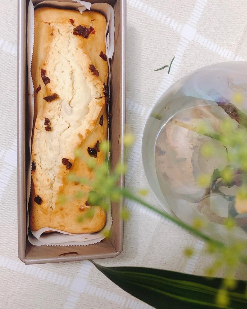 放了点蔓越莓装饰,老公不喜欢甜的,糖减至40克,能吃出一点点甜味,挺好哒。