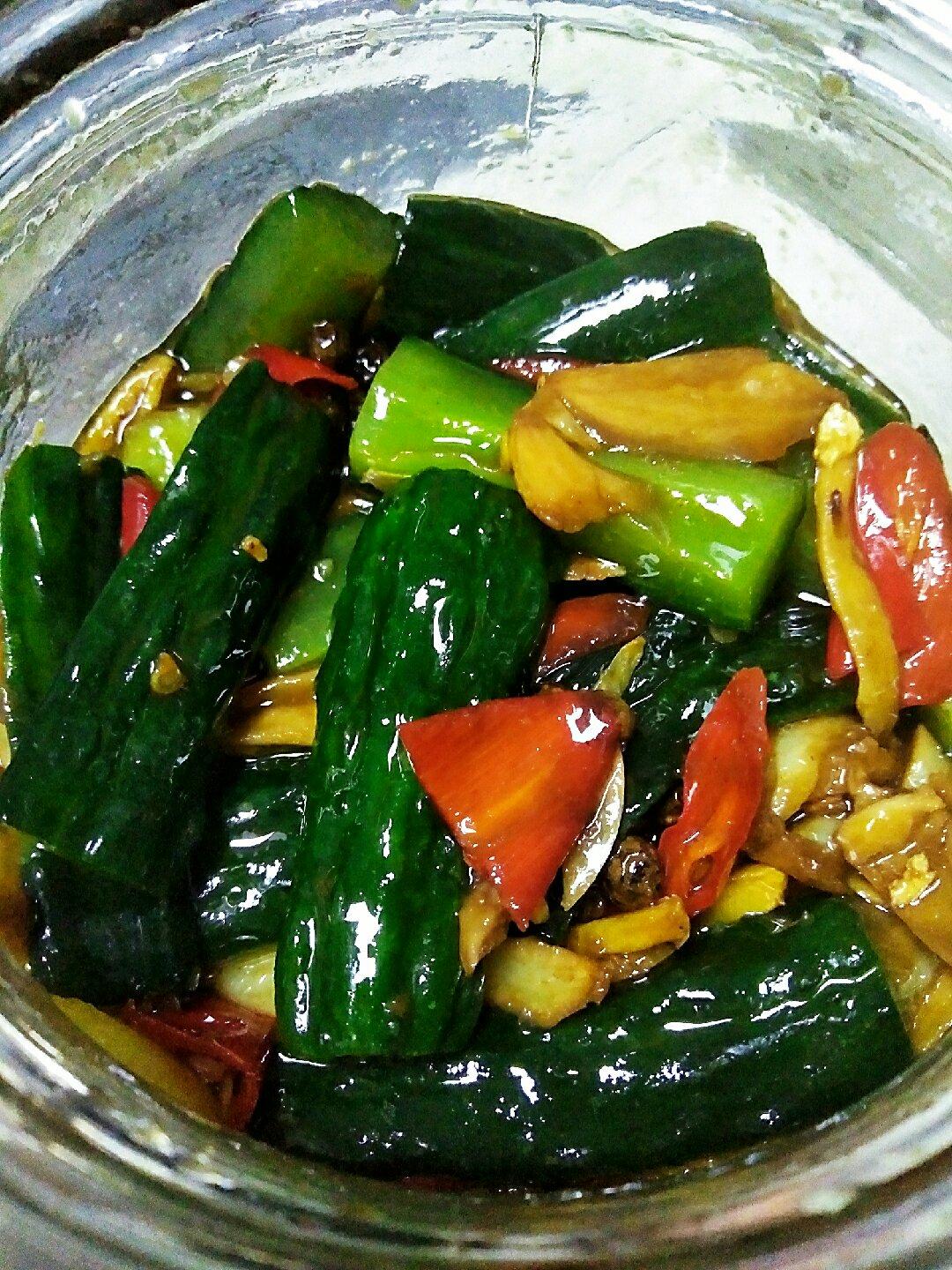 想尝试不同酱黄瓜的味道!做好了又怕亚硝酸盐太多不敢吃😂!一餐只敢吃三四片,味道还行,不过没之前做的放苹果的酱黄瓜惊艳