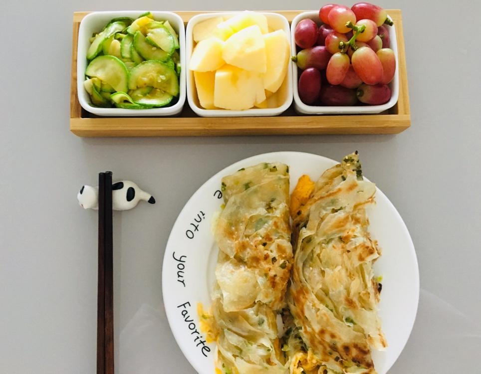 鸡蛋手抓饼~清炒西葫芦~
