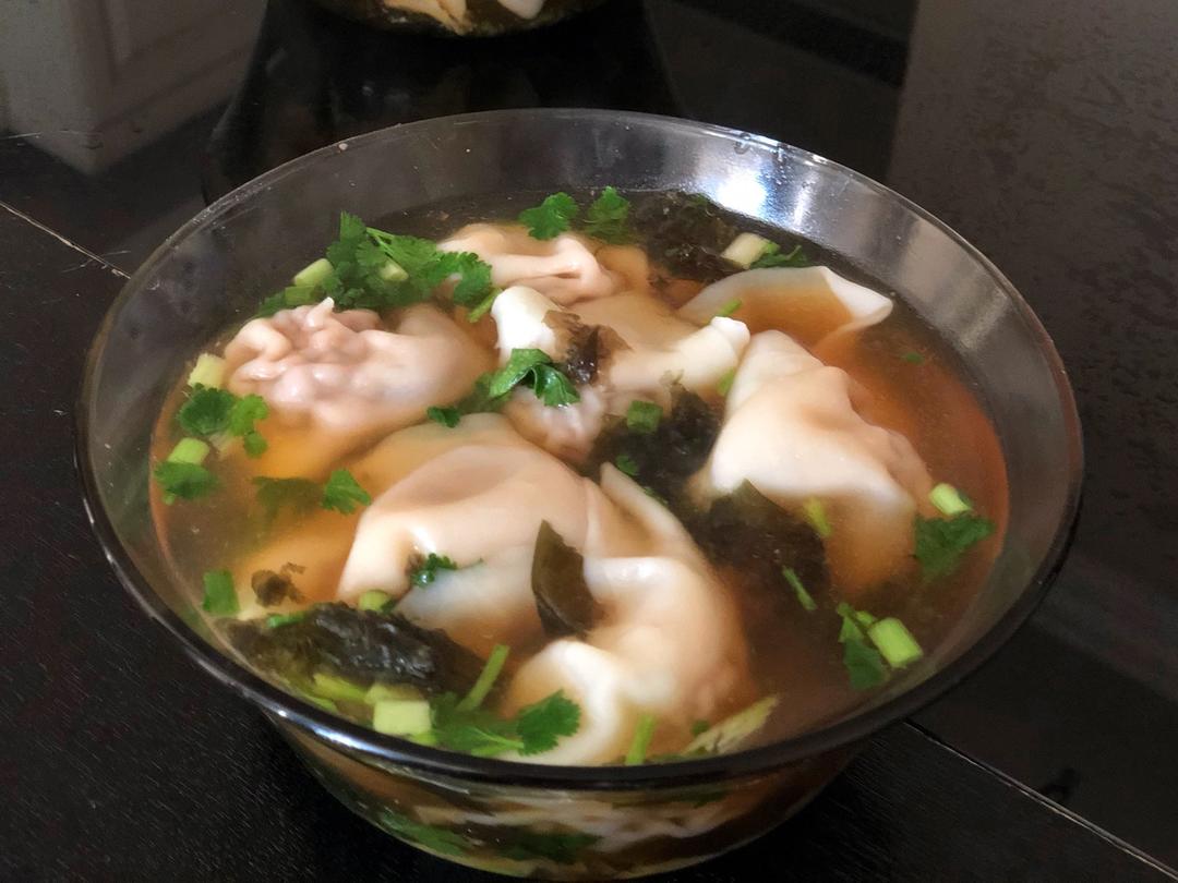 佳baby0312 做过 元宝馄饨的包法 牛肉大葱馅的,放了十三香、蚝油、生抽、老抽、鸡蛋、料酒、花椒水、鸡精、盐,汤喝了一大,自己包的肉馅贼多,吃了8个#晚餐•2019年12月3日# 2019-12-03