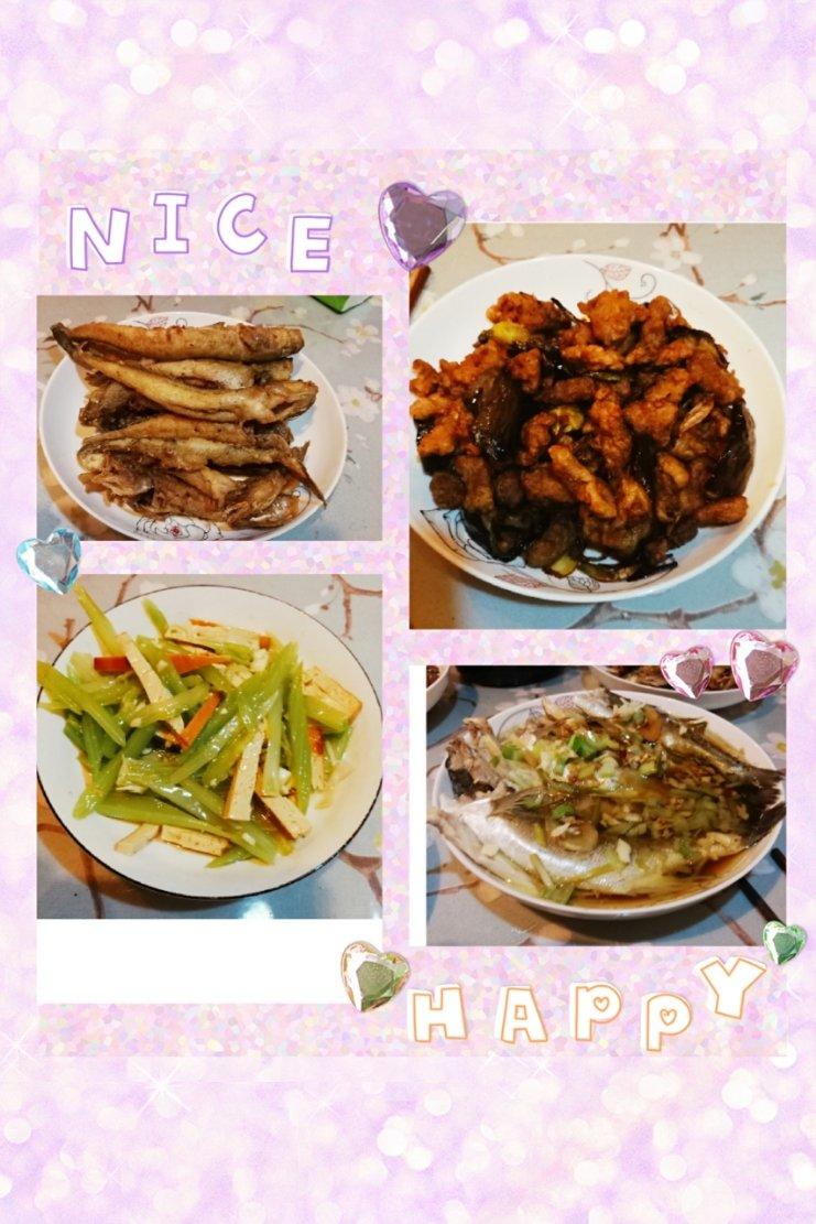 YX大姐 做过 红烧焖黄花鱼 今天肉段烧茄子🍆是小宝点的豆干拌西芹特别简单但又特别好吃口感清淡爽口清蒸鲈鱼🐟今天的🐠也特别的新鲜,鱼皮是铮亮的眼睛也是亮亮的,开锅蒸了很短的时间就出锅了,太鲜了,炸的鱼🐠我一条也没吃,就吃这个清蒸鲈鱼了😄 2019-12-10