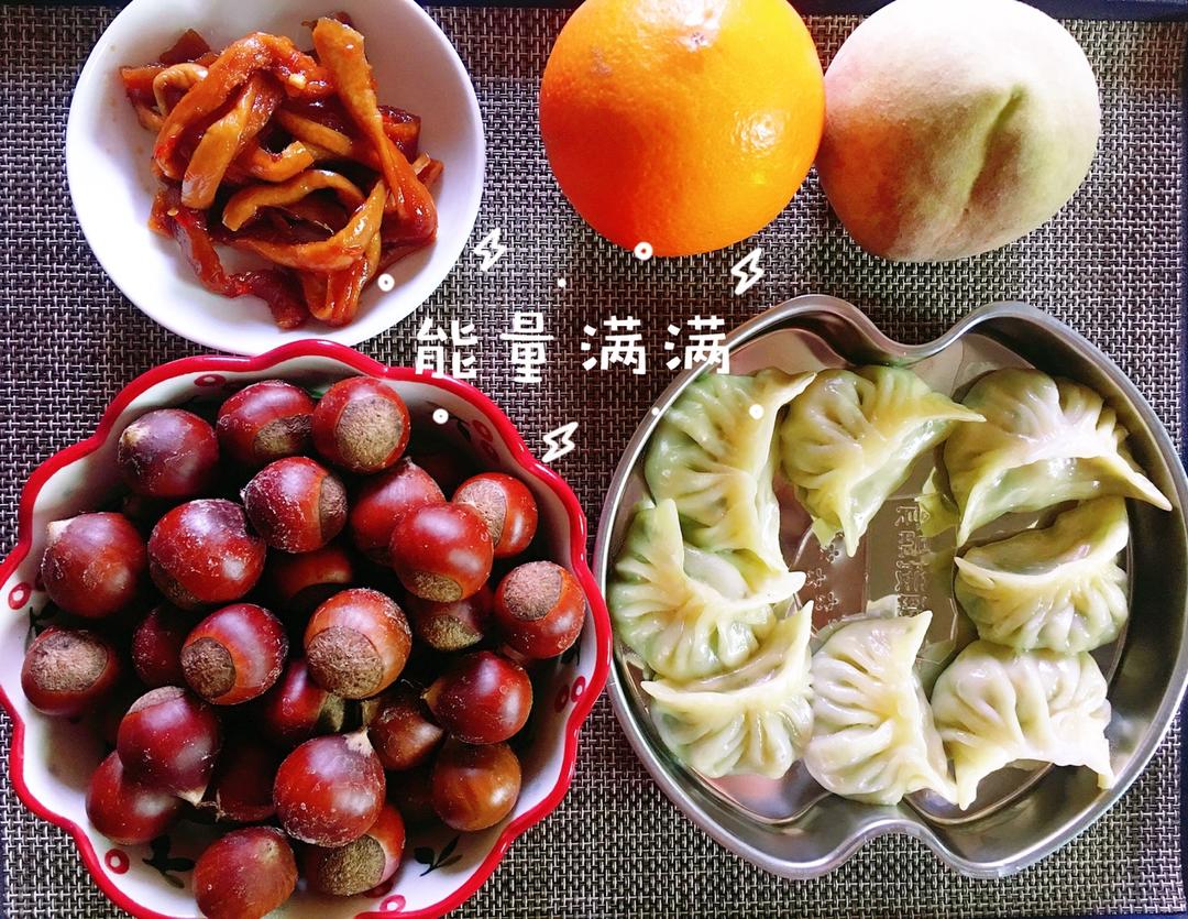 蒸饺➕板栗➕水果