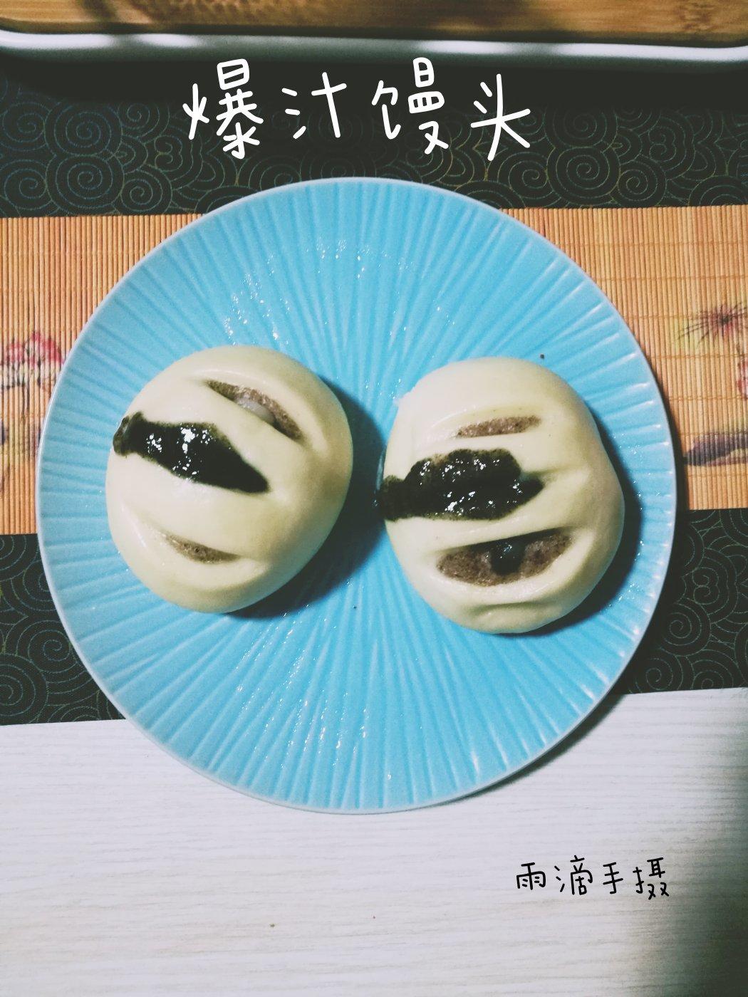 微信上看到一款爆汁馒头,用两种不同颜色的发面擀成片状重叠,中间包一个汤圆,蒸好的馒头个个爆汁,我试了一下,果然爆汁。
