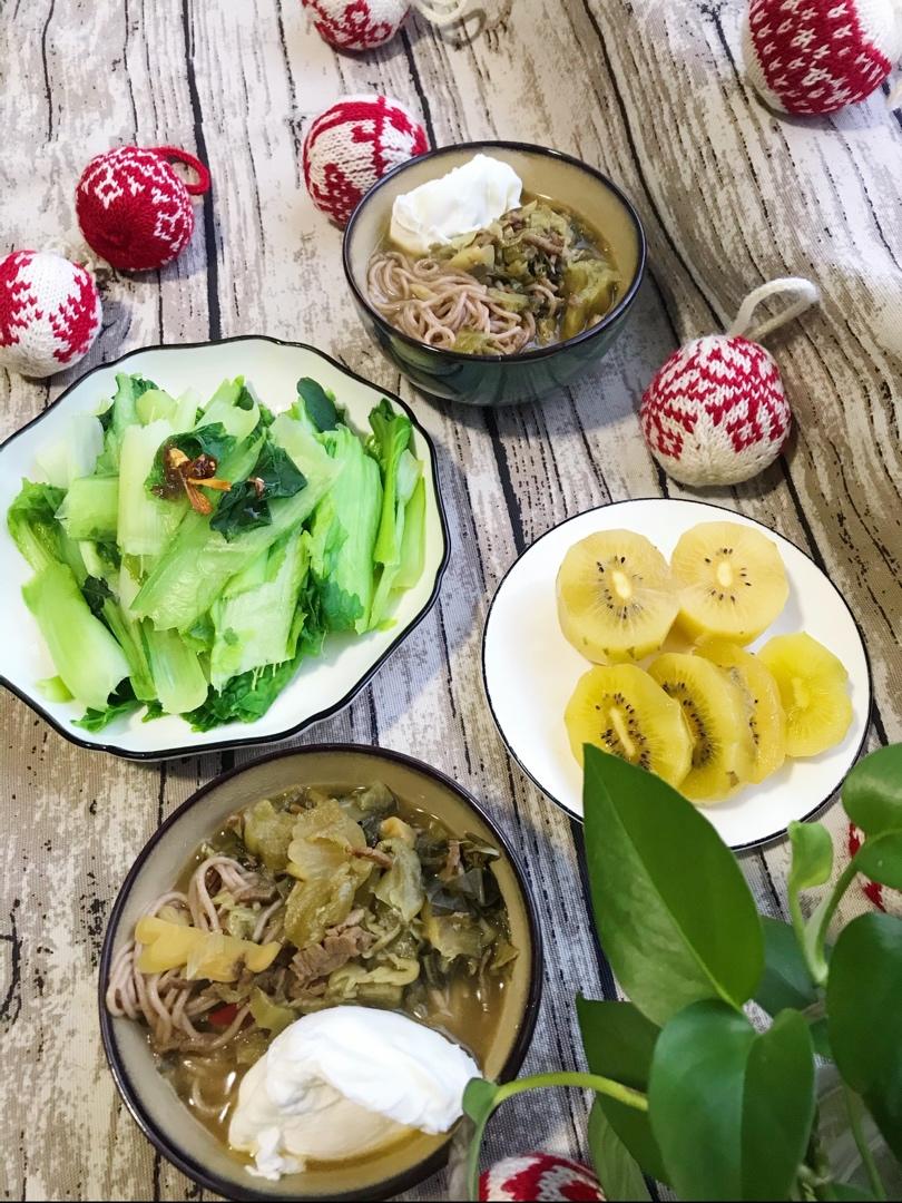 羊肉酸菜红米线 拌小白菜 猕猴桃