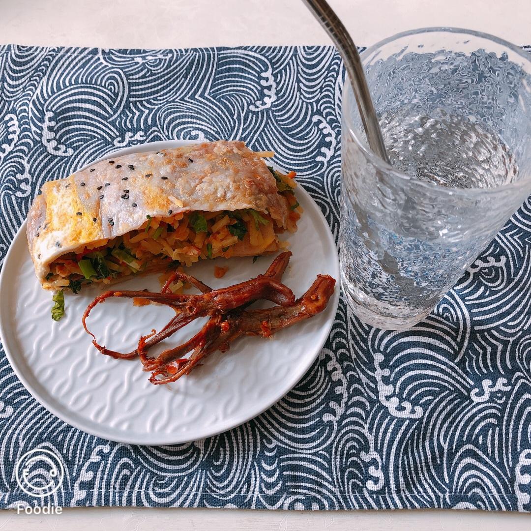煎饼果子+卤鸭舌+气泡水