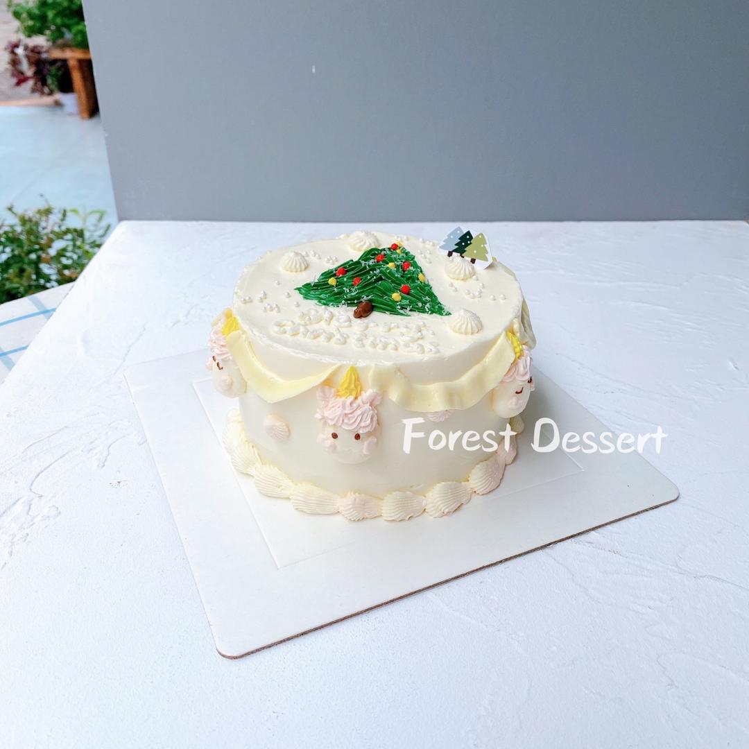 本来客户说蛋糕上要有一棵🎄 后来说小朋友想要再圈一圈🦄️ 那就用奶油挤上去吧 这挤奶油技术还行哈