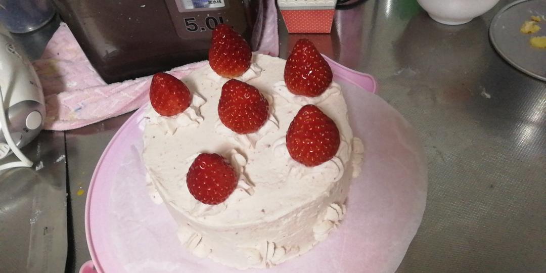 第一次做蛋糕,没用预拌粉,草莓酱和着奶油,好吃