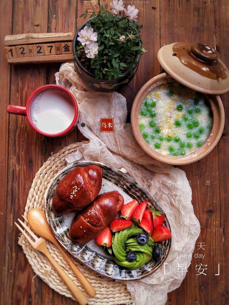 补发今天的混搭早餐:今天继续喝粥,玉米青豆鸡肉小米粥,巧克力小餐包,牛奶,牛油果草莓!祝各位周末好心情!