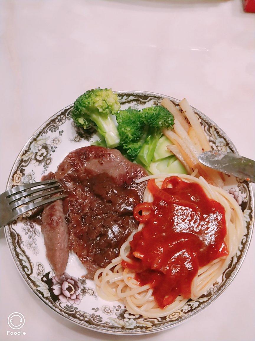 今天老公想吃牛排,顺道又做了个意面,突然又发现还有薯条🍟,意面酱做法已发了小伙伴们
