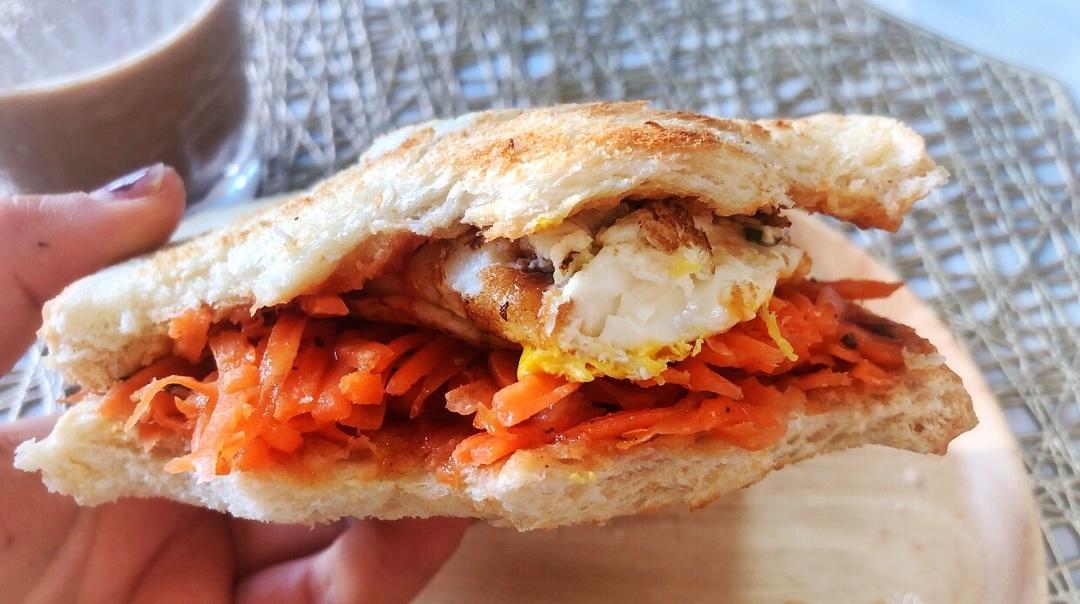 柠檬夹馅儿Yoga 做过 【超快手五分钟早餐系列八】胡萝卜鸡蛋沙拉开放三明治(自制低卡沙拉酱) #早餐•2019年12月31日# #一人食# 每次在下厨房上传我的一日三餐时,心情都是温暖的,平平淡淡才是真 2019-12-31