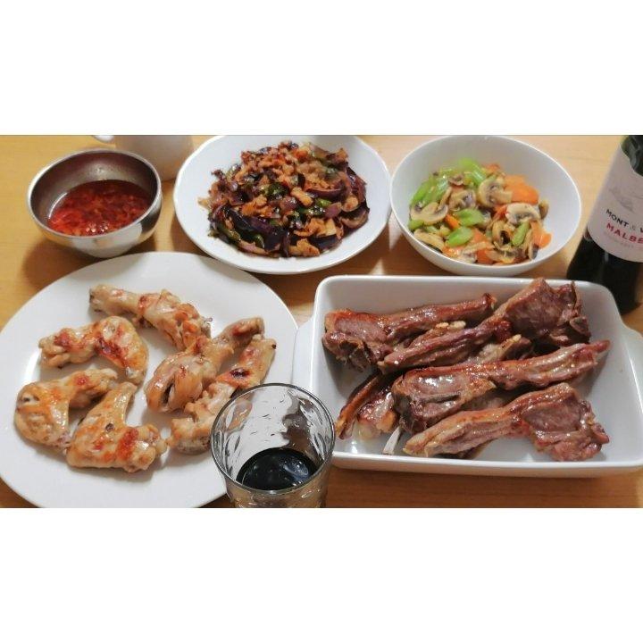 小倩714 做过 英国留学吃什么? 自给自足的小倩厨房开张了! 烤羊排,烤鸡翅鸡腿,麻辣回锅肉,什锦素炒,蘸料碟,红酒~两个女人一个小娃吃的肚儿滚圆!#早餐•2020年1月4日##Mercy in UK# #时差八小时,睡前说早安##Mercy's kitchen##小倩厨房# 2020-01-04