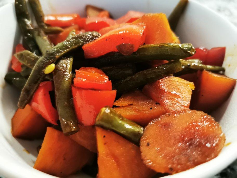 用地瓜代替土豆,加了甜椒,老抽上色,好吃!😊