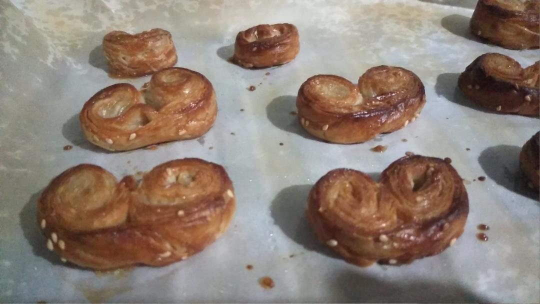 用手抓饼做的蝴蝶酥,烤的过程中才发现手抓饼的油真多。