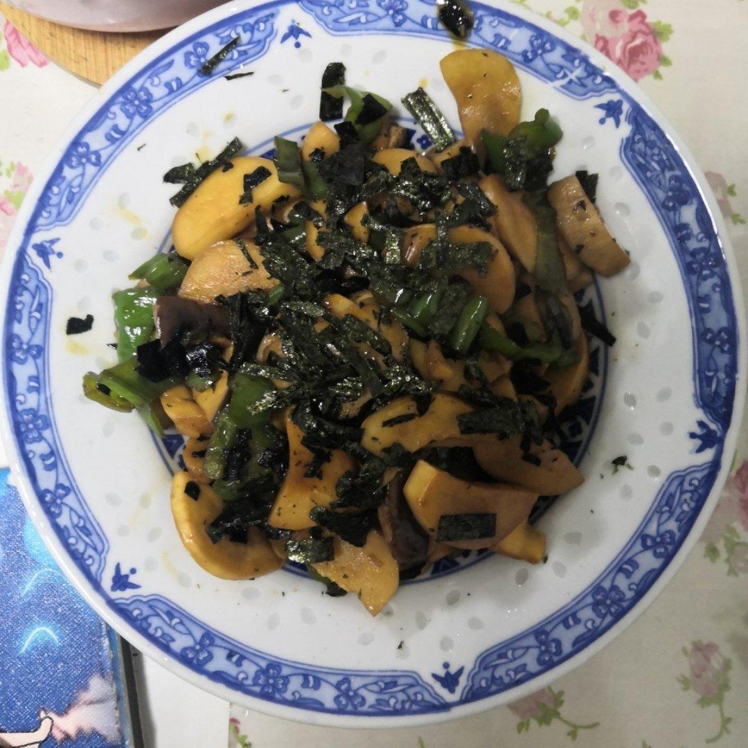 刀工没那么讲究,切成一样大的片了事😂没有海苔碎特意去买了波力海苔撕碎😂海苔真的是神来之笔,鲜得不要不要的😂