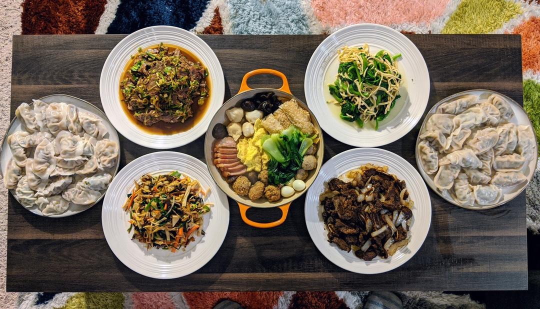 卤牛肉 十样菜 黑椒牛仔骨 清炒豆苗 全家福杂烩 韭菜猪肉饺子 不寻常的春节 大家平安!
