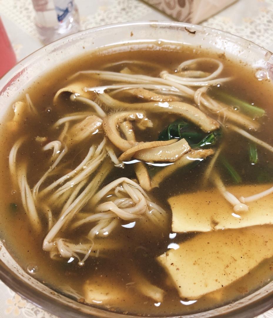 iloveyou-loveme 做过 2020年01月31日 冬季温暖酸辣肚丝汤,做法超级简单,肚丝先下锅,煮白后加入金针菇豆腐片木耳丝,待水沸后加入适量老抽黑胡椒粉醋和盐,快熟时加入面粉,随后加入菠菜,暖哄哄的汤就出锅啦 2020-01-31