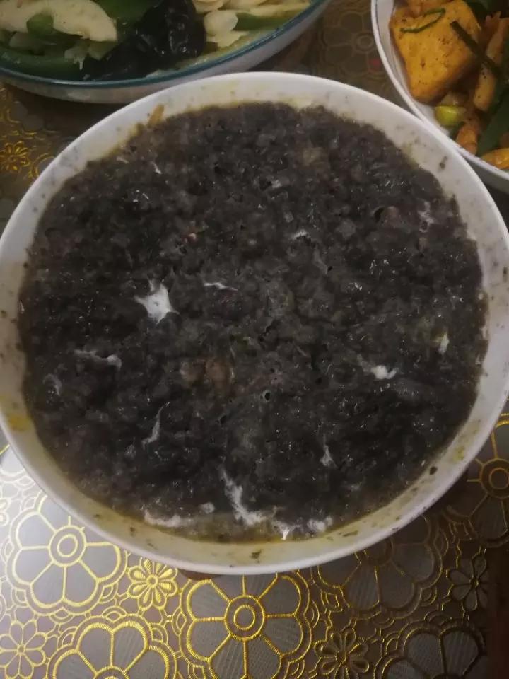五花肉腌鱿鱼剁碎,放生粉(薯粉也行)鸡蛋鸡粉,蒸二十分钟