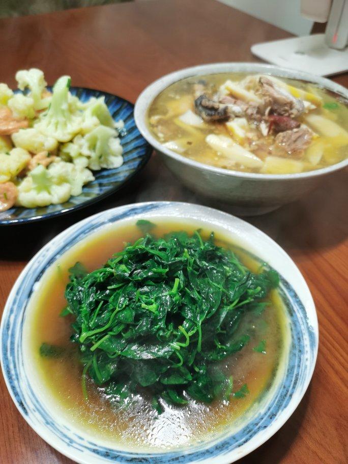 中午的鸡汤继续喝着,再炒两盆菜。