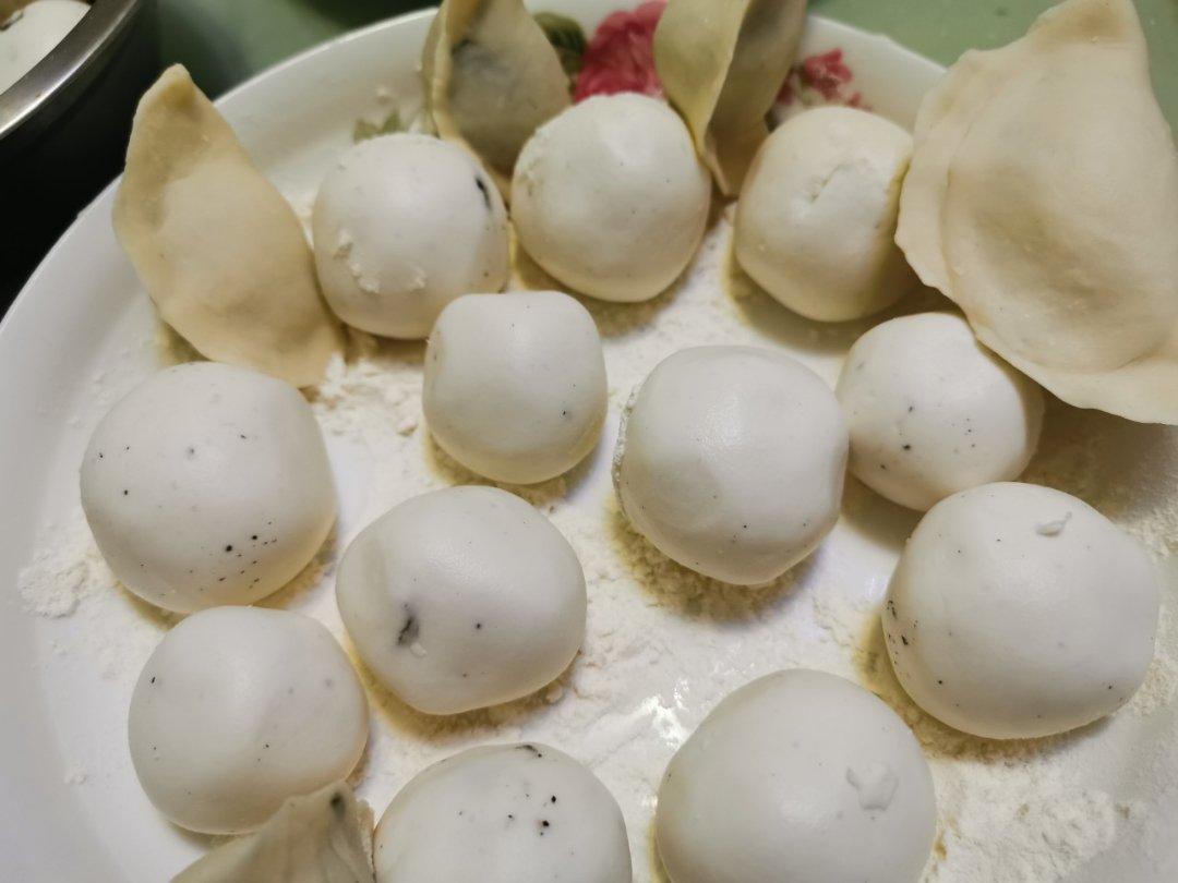 皮不够了 我妈说包成水饺吧😂😂 第一次包皮有点厚 好歹皮没破 猪油是现熬的 再接再厉啦