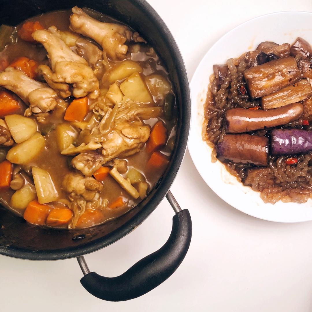 - 咖喱杂菜鸡翅根(🧅🥔🥕芹菜平菇春笋青椒)
