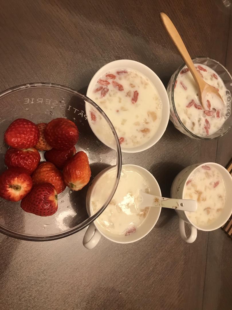 牛奶桃胶配草莓
