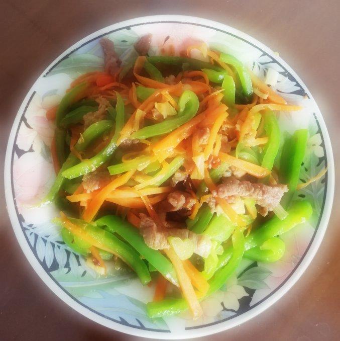 胡萝卜丝,青椒丝,肉丝,麻椒,红辣椒。