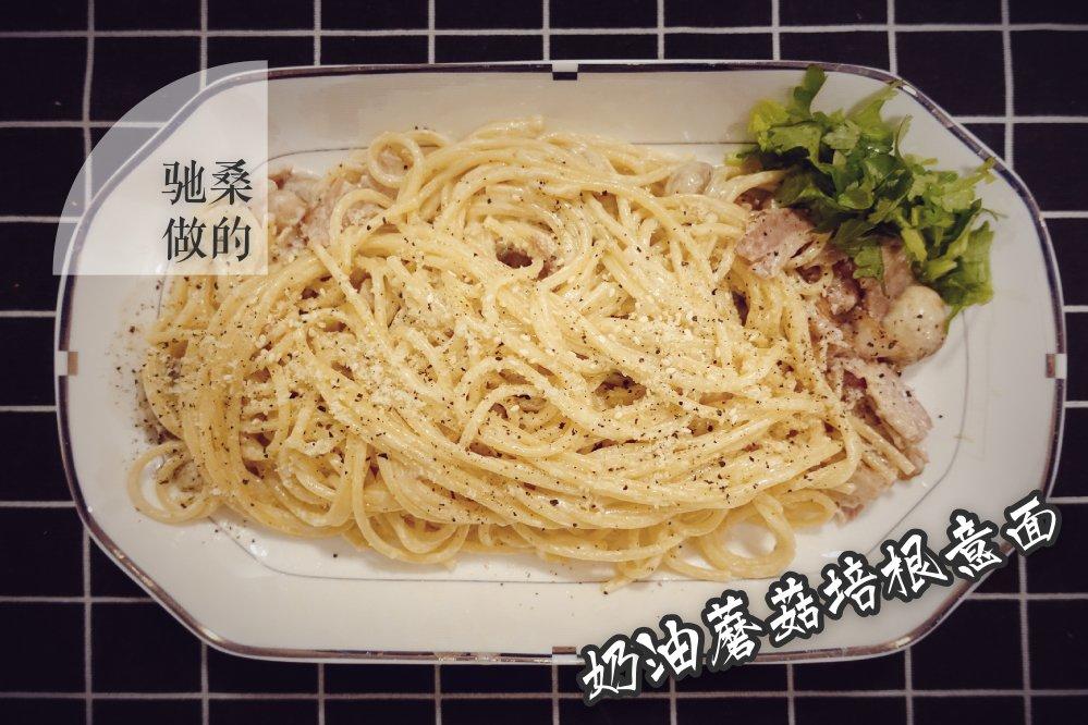 驰桑 做过 晚餐•2020年2月21日 1.这次做的时候,用热水烫了一下口蘑,因此少了蘑菇的香味,略嫌不美2.淡奶油和牛奶的比例将左右甜腻的口感,奶油少了也不行,意面下锅是比较吸奶油的。#晚餐•2020年2月21日# 2020-02-21