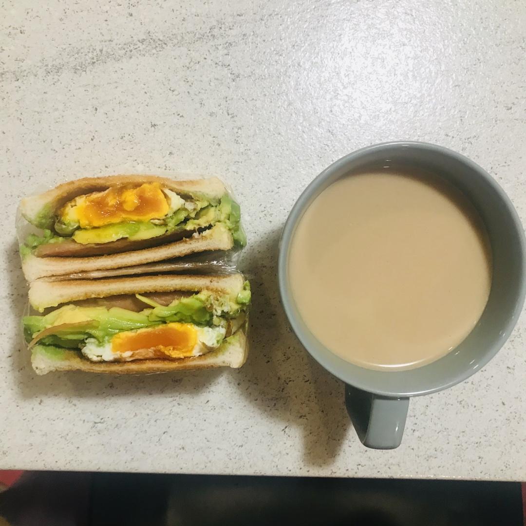 烤了两片面包,一颗没全熟却靠近溏心的蛋