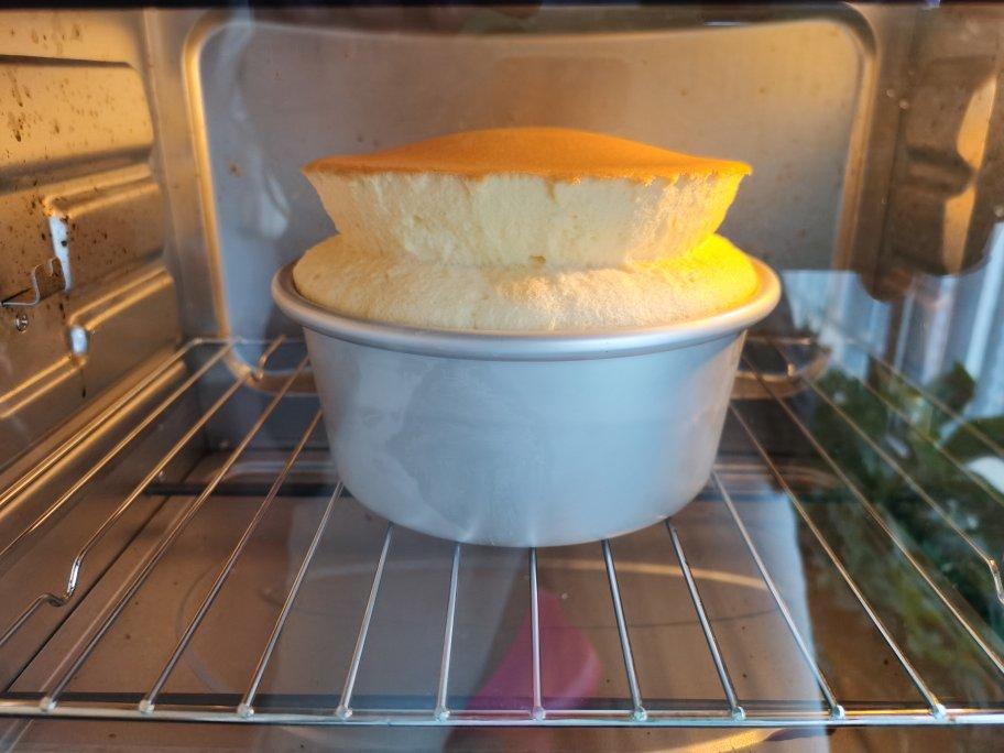 呵呵,今天第一次做了桃酥,桃酥尚可~戚风是第二次做,不知是鸡蛋搁多了还是怎么?怎的变成葫芦娃了呢?