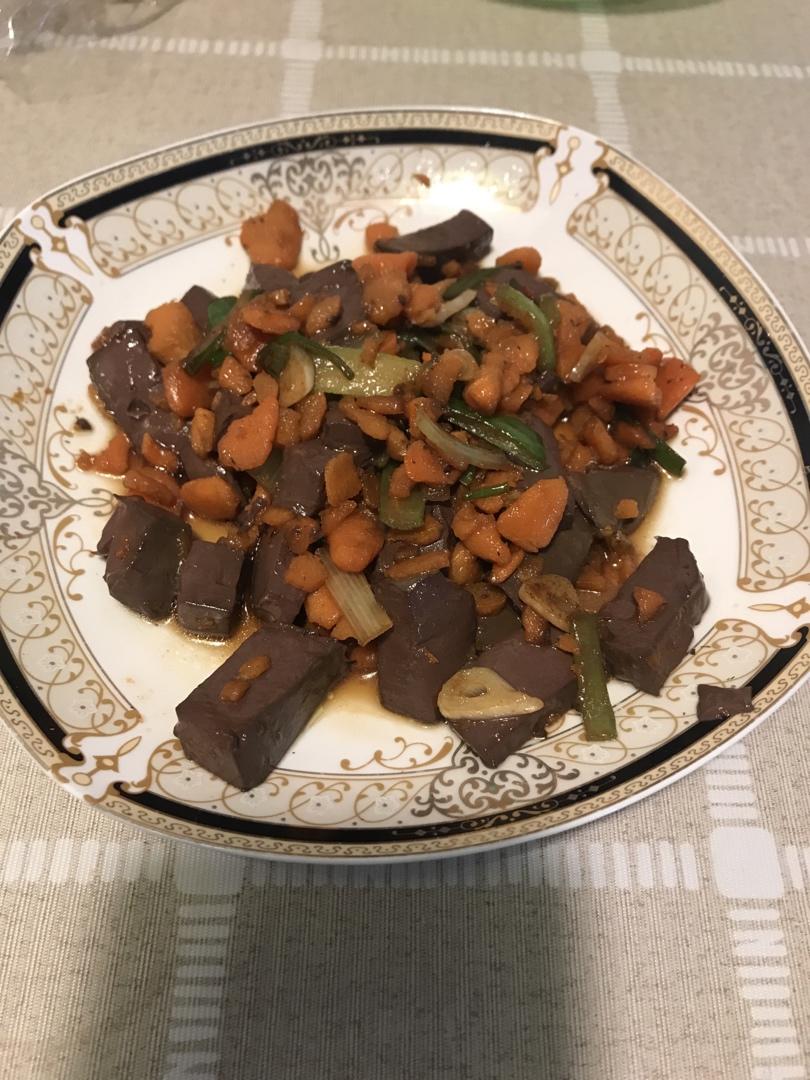 青蒜胡萝卜炒鸭血