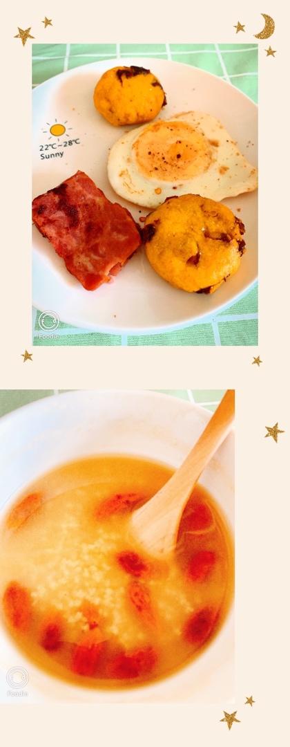 酒甜成瘾 做过 早餐•2020年3月3日 #早餐•2020年3月3日# 无油煎蛋、培根、两个自制的小饼,再配上一碗小米粥,完美~~自制的小饼香甜软糯,链接放这儿一定要试一试! https://www.xiachufang.com/recipe/104385014/ 2020-03-03
