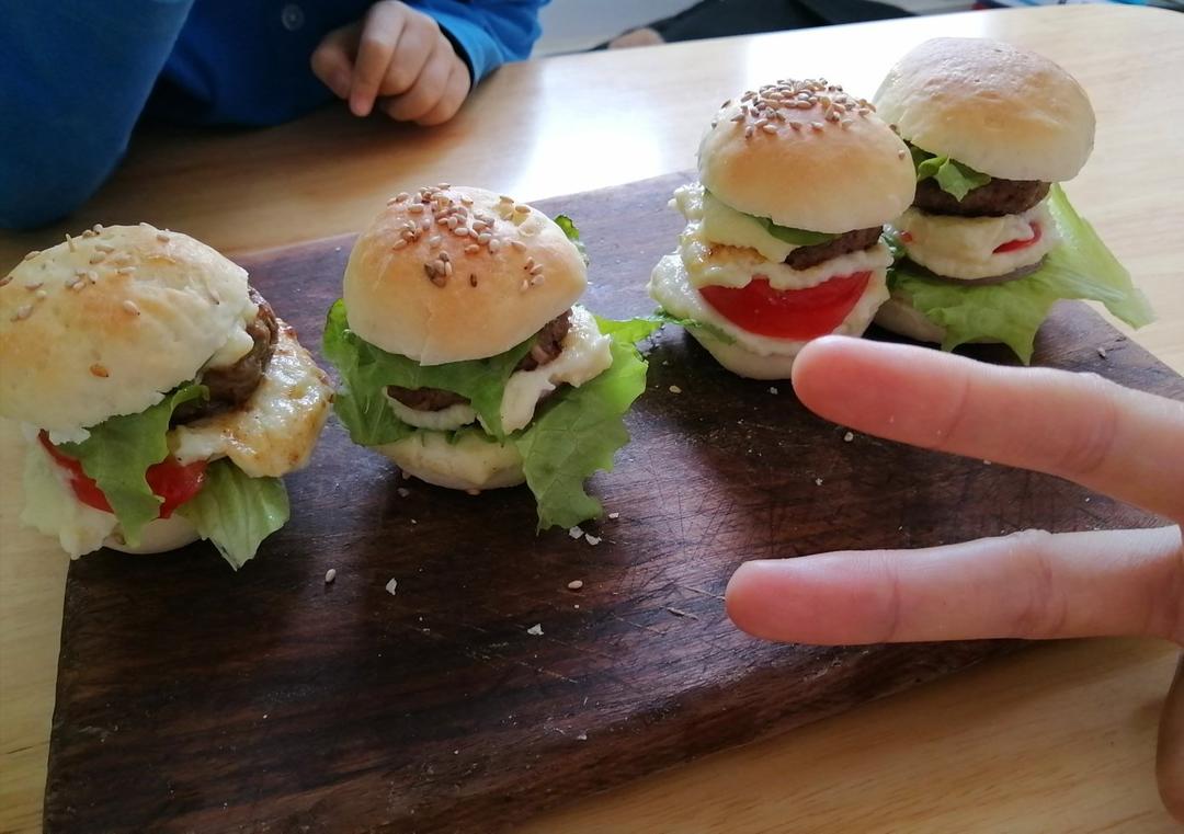 从来用普通粉做面包,因为不喜欢家里材料太多,水改了牛奶,普通粉的话我要加很多牛奶,配上自己做的牛肉饼和沙拉酱,哄儿子够了