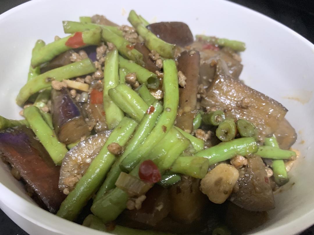 下饭菜茄子炒豆角(少油版)