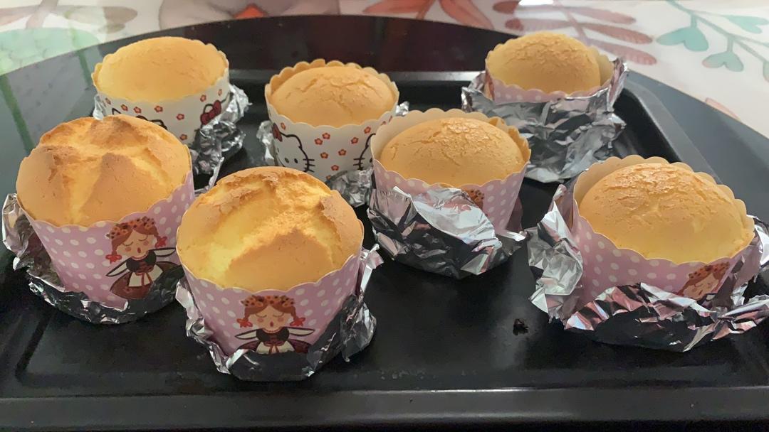 严格按配方一步步来,改良了一下用纸杯来装的,因为烤盘里需要放温水,所以自创包了一层锡纸,防止纸杯浸湿,蛋糕很成功,松软好吃哦!