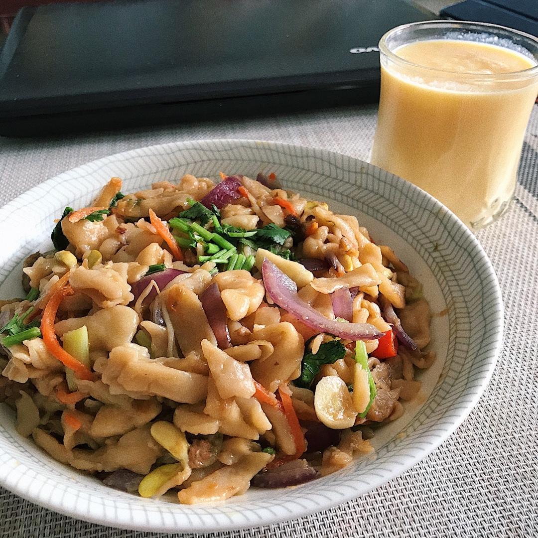 昨天吃炸酱面剩的面条 把所有材料准备好 神仙炒面就安排上了!