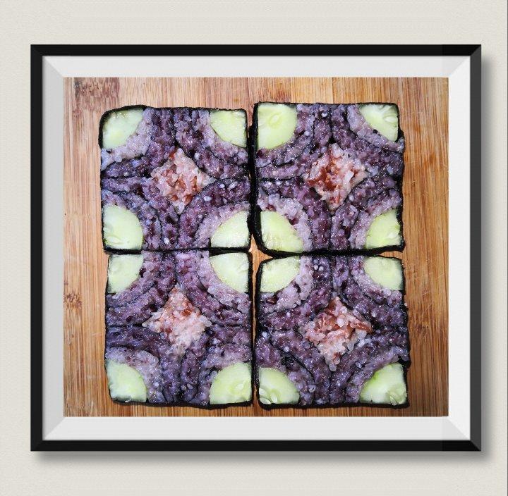 糖蛋宝 做过 2020年03月09日 宽度10公分的海苔,切了四个,每个差不多2公分,很大的一个,快抵上饭团了!个头太大解决方法,首先缩小黄瓜,黄瓜对切后,只取两头,重新组装成黄瓜,再卷米饭,米饭层要薄,颜色对比明显,效果会更好看。 2020-03-09