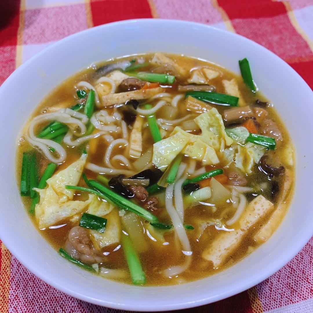 MLQQ卷心 做过 晚餐•2020年3月9日 #晚餐•2020年3月9日# 纪念一下最爱的臊子面(我最爱的陕西面食,没有之一)。第一次做,看了一些方子,最后是凭着感觉做的,食材一样不能少,豆腐、黄花、木耳、胡萝卜、土豆、蛋皮,还特意去买了韭菜。味道跟记忆中的已经很接近了,不足有三:面多了,汤少了,油少了。 2020-03-09