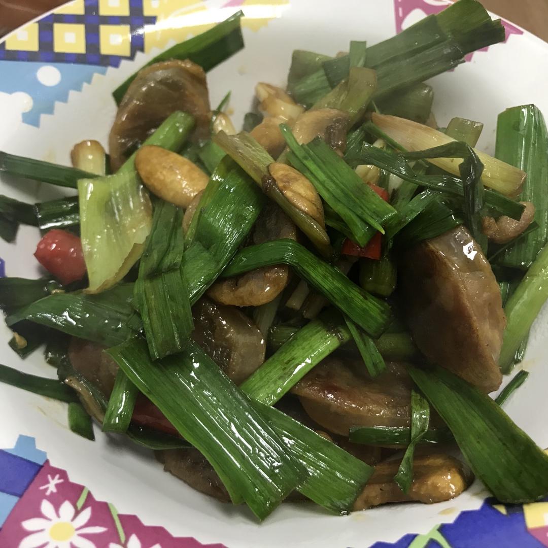 PAC-MAN 做过 蒜炒腊肠 我建议蒜白和蒜叶切好分开 蒜白用刀背拍一拍更容易入味 我还加了白蘑菇 把蒜末和红辣椒低油温爆香后 大火下蒜白 炒得差不多了再下蒜叶和香肠 如果油烟大怕焦可以稍微加点水 香肠本身就有味道 我只加了一茶勺酱油代替盐 2020-03-16