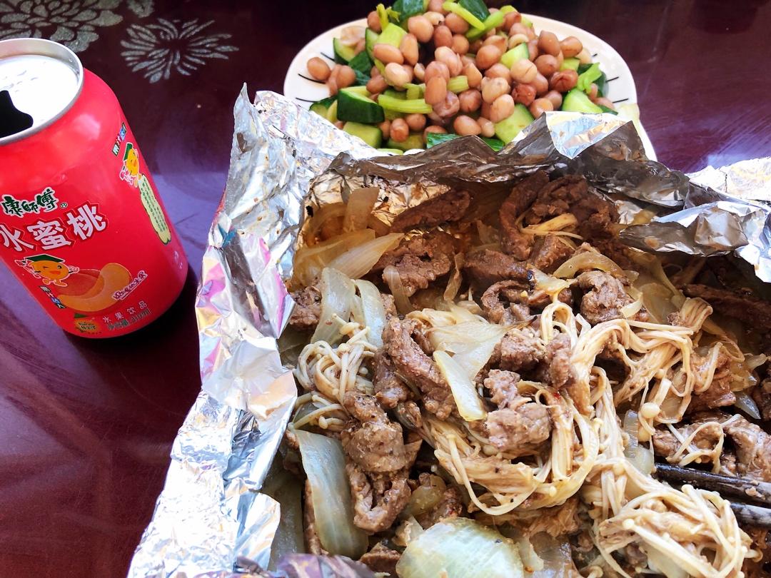 May麻 做过 牛肉🥩 牛肉放蚝油,盐,醋,酱油,料酒,水,腌一会,再放淀粉和油,抓匀,腌上切洋葱,洗金针菇锡纸上依次铺洋葱,金针菇和腌好的牛肉,上面再盖一层锡纸,放入炒锅,加盖焖10分钟划开锡纸,撒上黑胡椒,搅拌金针菇超级好吃本次缺点,腌的时间短,淀粉酱油盐放的少了,下次改进#牛肉🥩# 2020-03-17