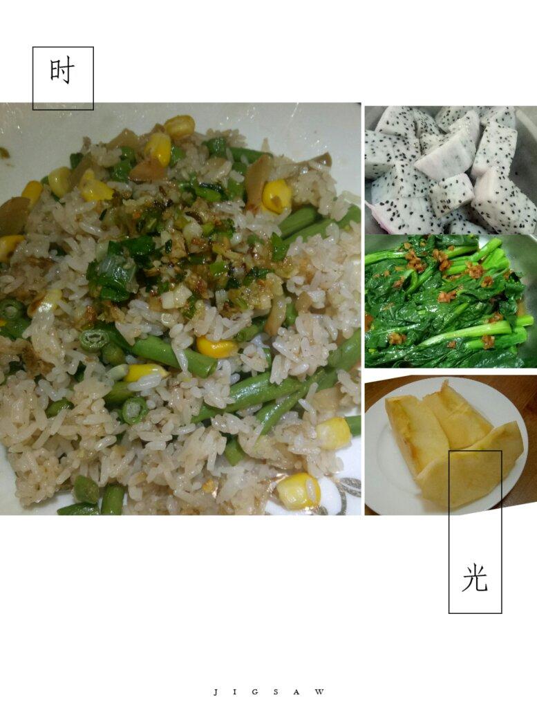 火龙果,灼菜心,苹果